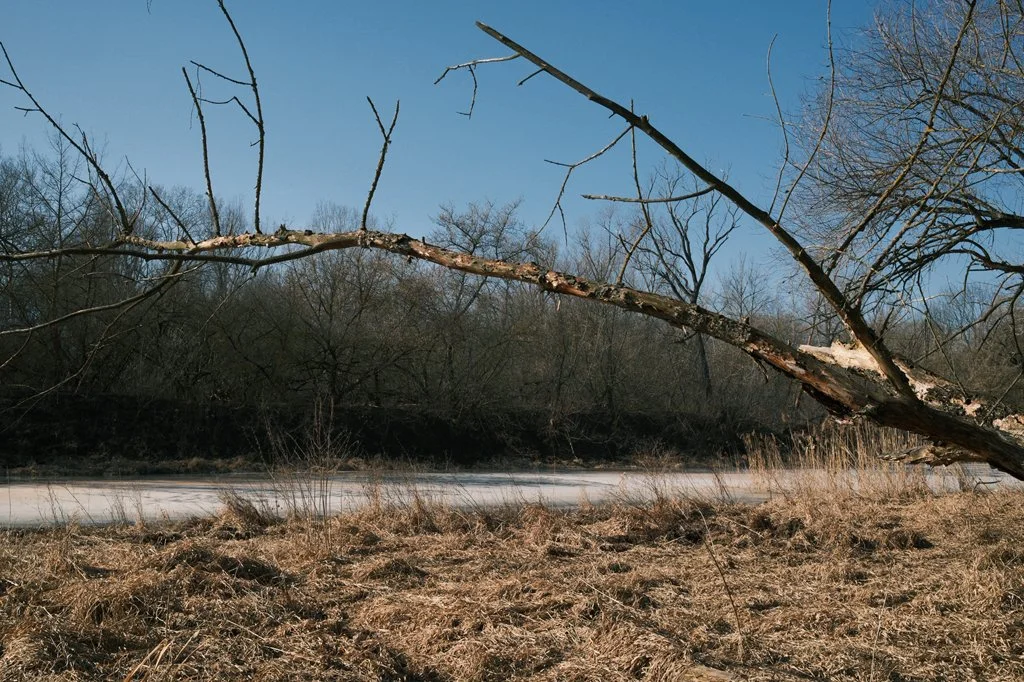 Zawsze jest mi ciężko złapać te pierwsze kadry po wyjściu z domu i wpaść w taki fotograficzny trans. Też tak macie? Próbowałem przełamać ten stan, robiąc kilka ujęć Wisły z mostu, ale niestety nie byłem zadowolony z efektów. Przeszedłem przez most i zszedłem na lewą stronę rzeki, aby znaleźć ścieżkę prowadzącą w stronę Parku Młocińskiego. Ponieważ były roztopy, wpadłem w straszne błoto, które co chwilę przechodziło miejscami w resztki lodu, jeszcze nierozpuszczonego. Na przemian brnąłem w lepkiej mazi i ślizgałem się po lodzie, z trudem utrzymując równowagę. Naprawdę zaczynałem się zastanawiać, czy to wyjście miało jakikolwiek sens.